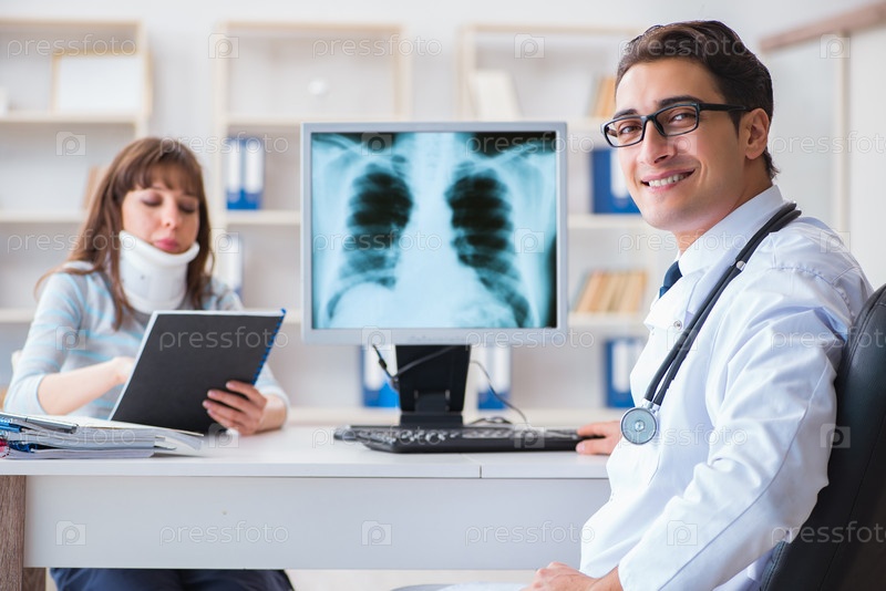 Молодая женщина посещает радиолога для рентгеновского обследования