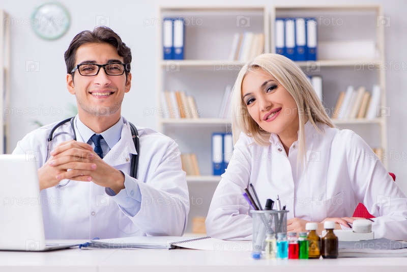 Врач и женщина обсуждают в больнице мужчину и женщину