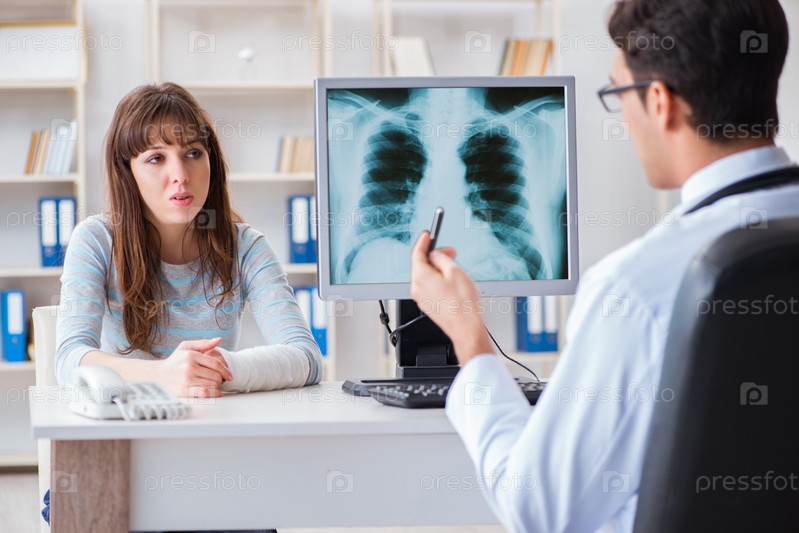 Молодая женщина посещает радиолога для рентгеновского обследования