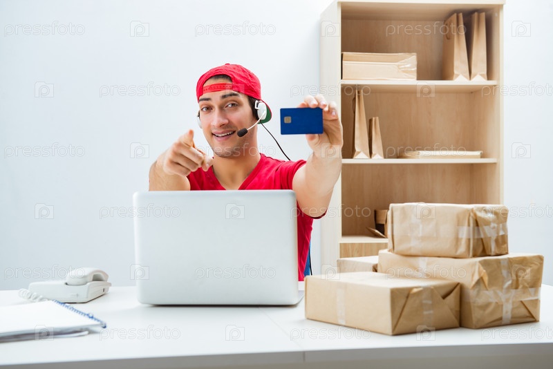 Работник колл-центра в центре распределения посылок в почтовом отделении
