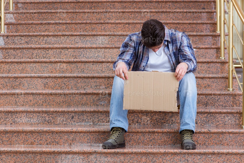 Молодой человек просит денег на улице