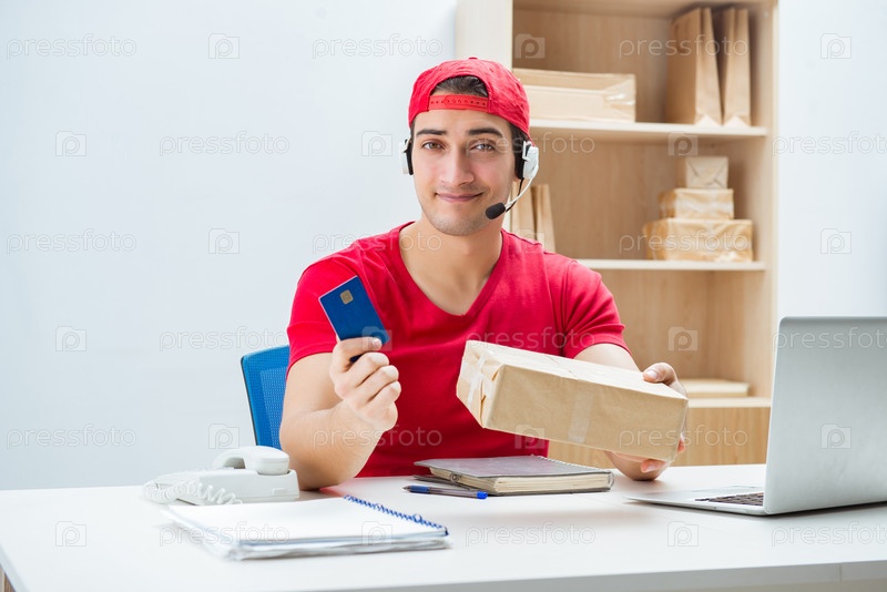 Работник колл-центра в центре распределения посылок в почтовом отделении