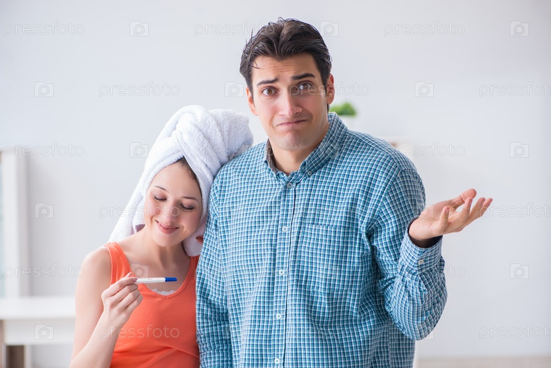 Жена и муж смотрят на тест на беременность