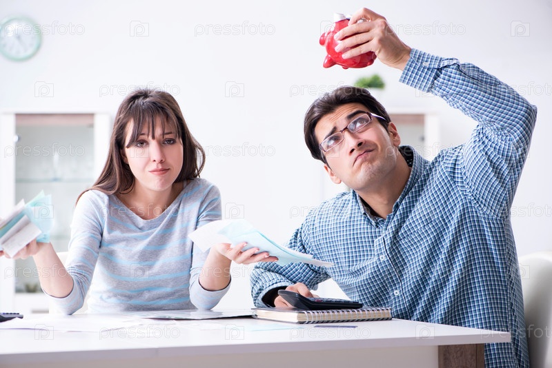 Молодая пара смотрит на документы по семейным финансам
