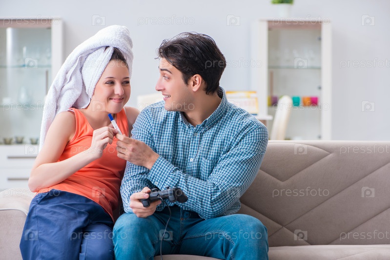 Жена и муж смотрят на тест на беременность