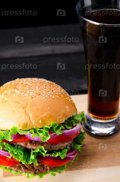 Бургер, подаваемый в булочке в концепции питания фаст-фуда