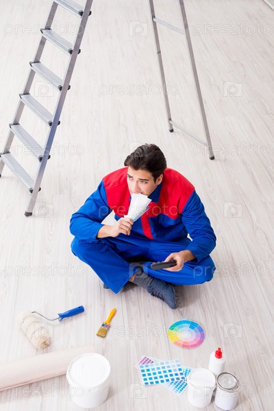 Молодой художник пытается сопоставить цвета для работы