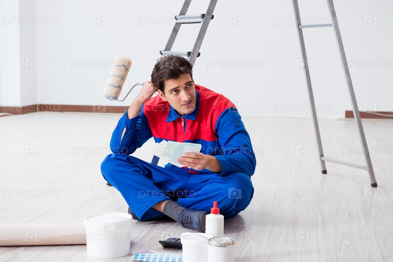 Молодой художник пытается сопоставить цвета для работы
