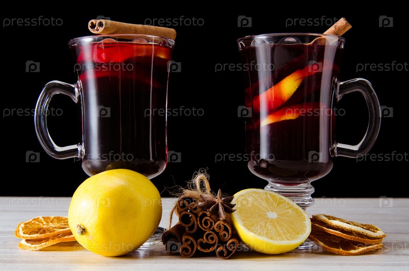 Хрустящее вино Glintwine подается в бокалах для рождественского стола