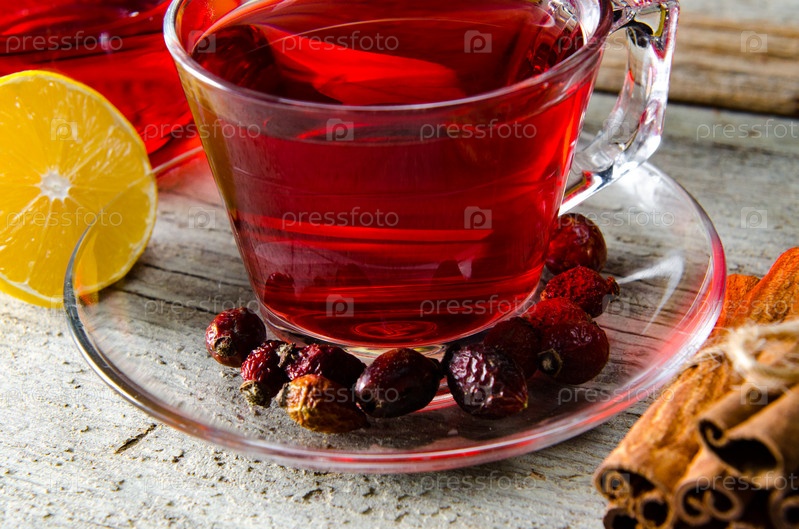 Фруктовый ягодный чай в чашке, подаваемой на стол
