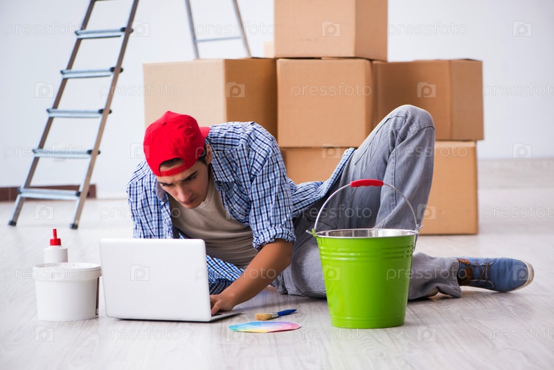 Молодой художник-подрядчик выбирает цвета для ремонта дома
