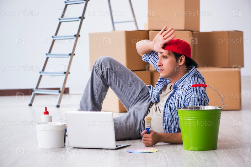 Молодой художник-подрядчик выбирает цвета для ремонта дома