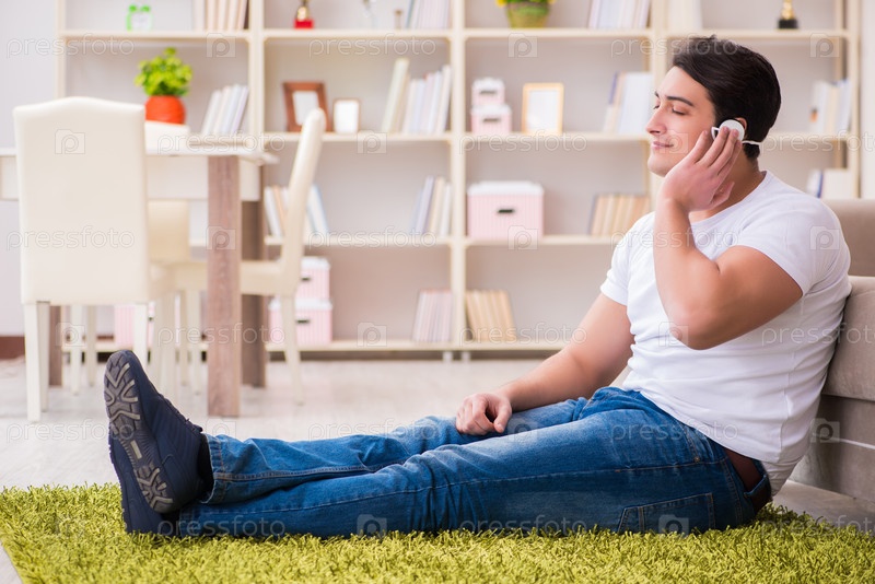 Молодой студент слушает музыку дома