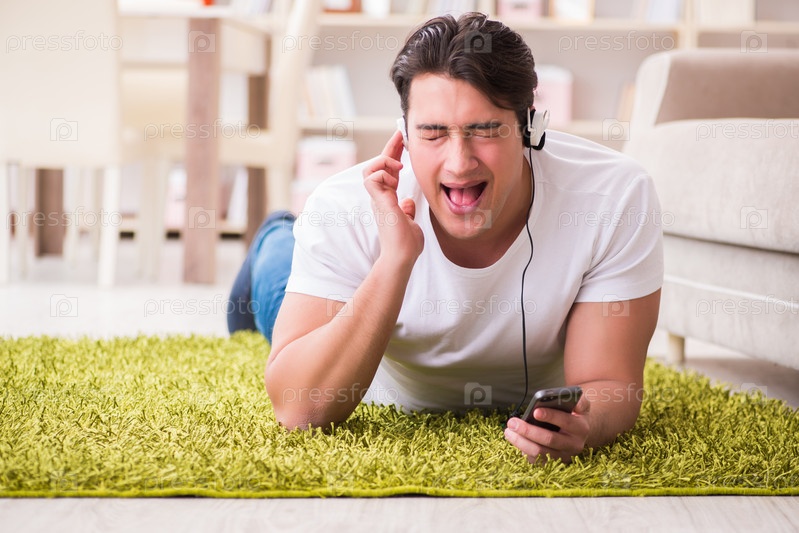 Молодой студент слушает музыку дома