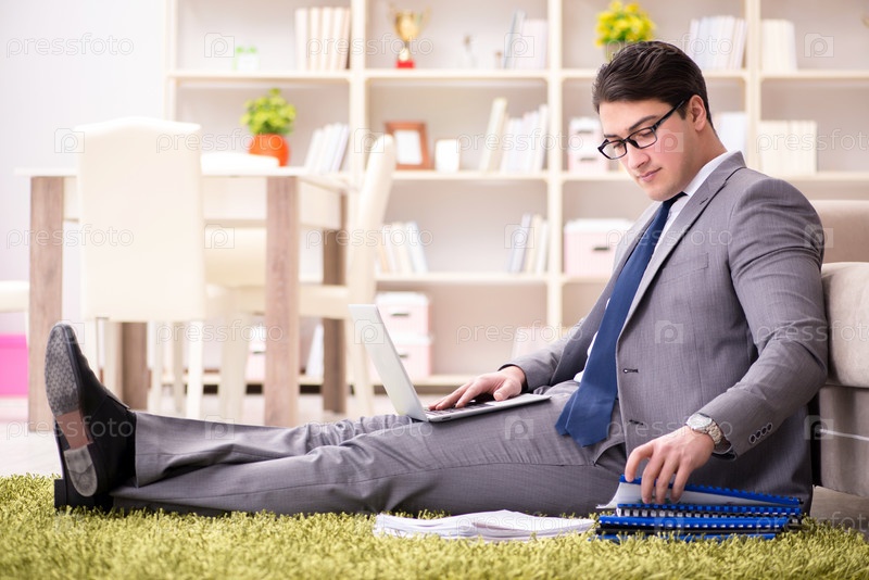 Бизнесмен, работающий на полу дома