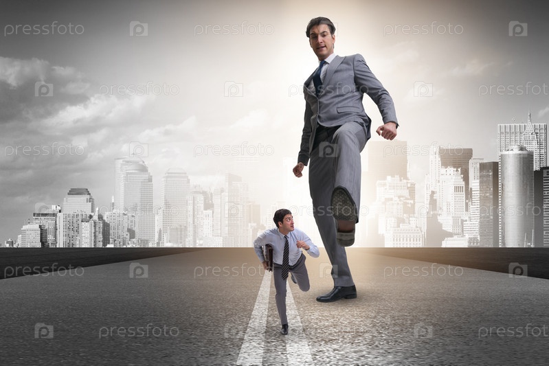 Плохой сердитый босс пинает сотрудника в бизнес-концепции