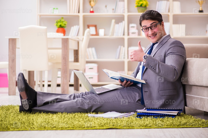 Бизнесмен, работающий на полу дома