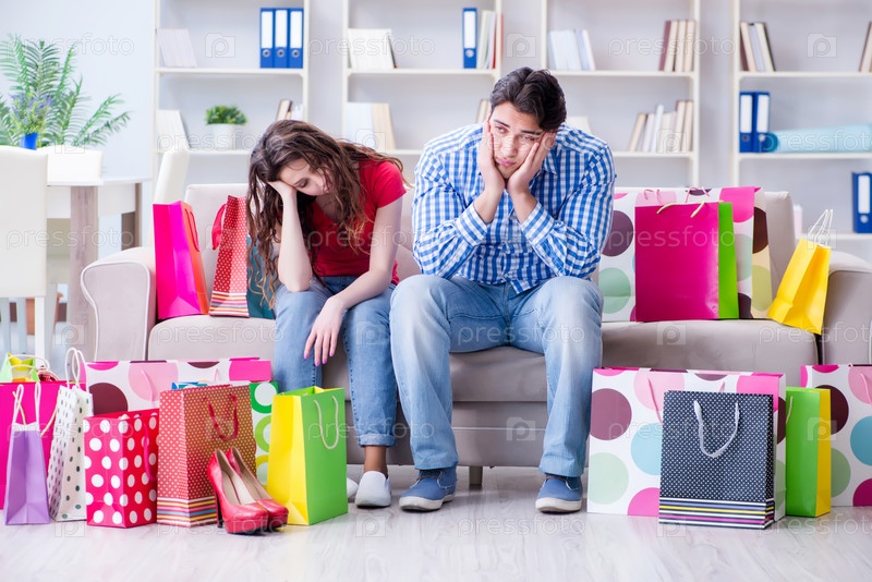 Молодая пара после покупок со многими сумками
