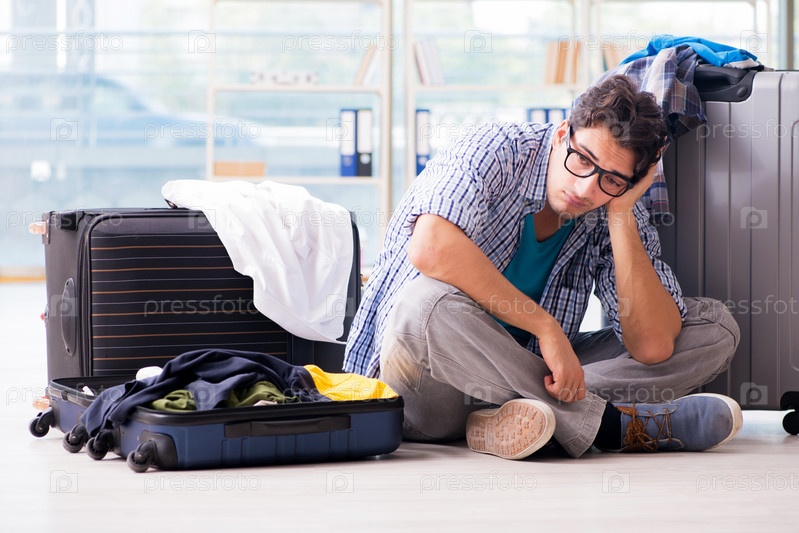 Молодой человек готовится к поездке на отдых