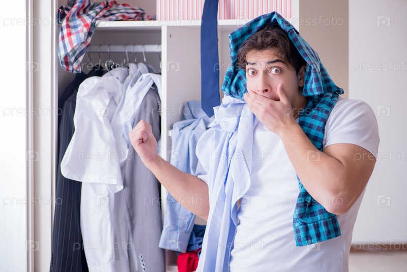 Мужчина беспомощный с грязной одеждой после разлуки со своей женой