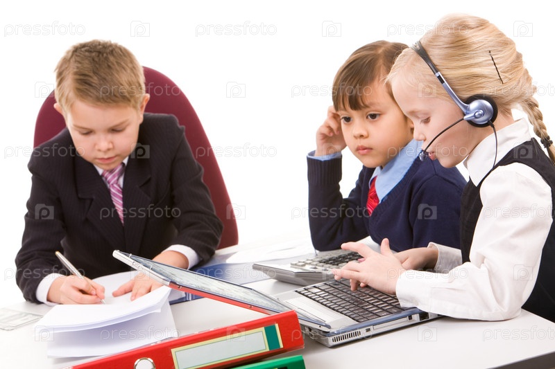 Фото умной девушки, разговаривающей по телефону с серьезным боссом и ребенком рядом