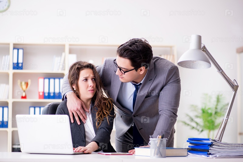 Концепция сексуального домогательства с мужчиной и женщиной в офисе