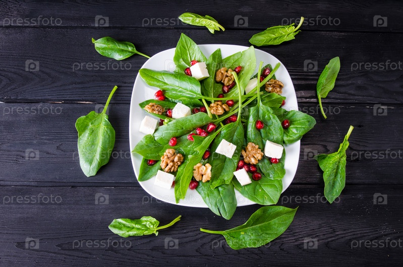 Салат из шпината с орехами и яблоками подается на стол