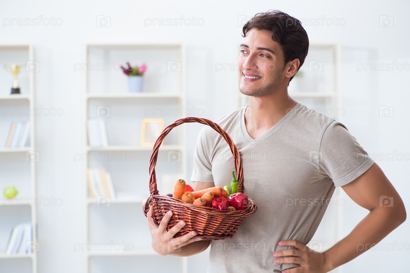 Молодой человек в концепции здорового питания и диеты