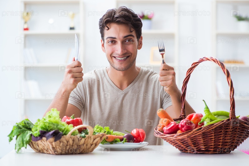 Молодой человек в концепции здорового питания и диеты
