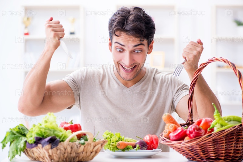 Молодой человек в концепции здорового питания и диеты