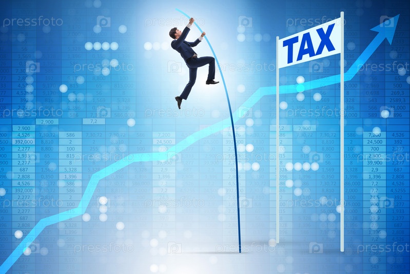 Бизнесмен, прыгающий над налогом в концепции уклонения от уплаты налогов