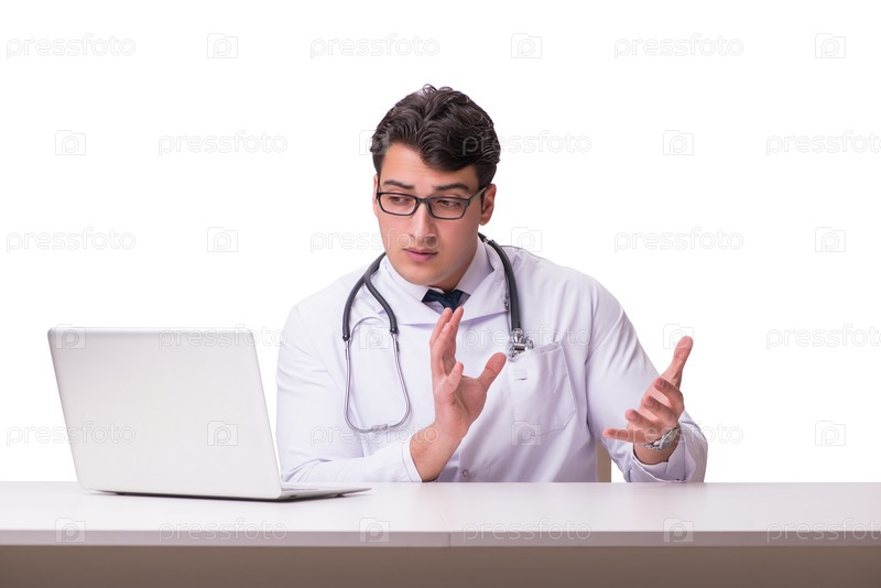 Доктор в области телемедицины mhealth концепция на белом