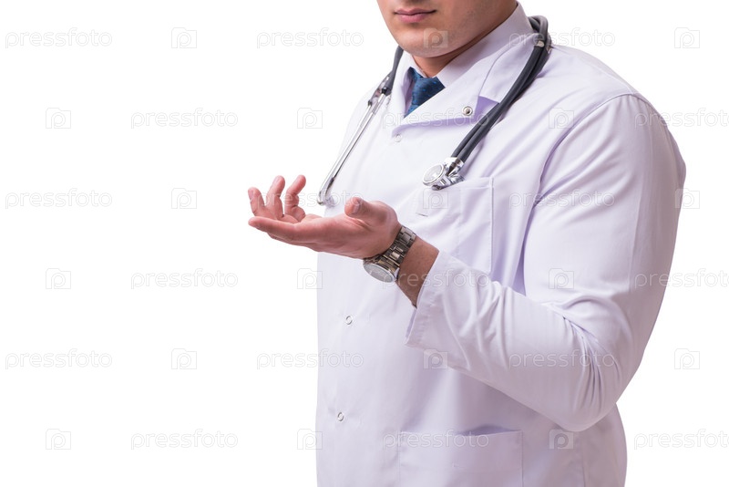 Молодой врач-мужчина изолирован на белом фоне