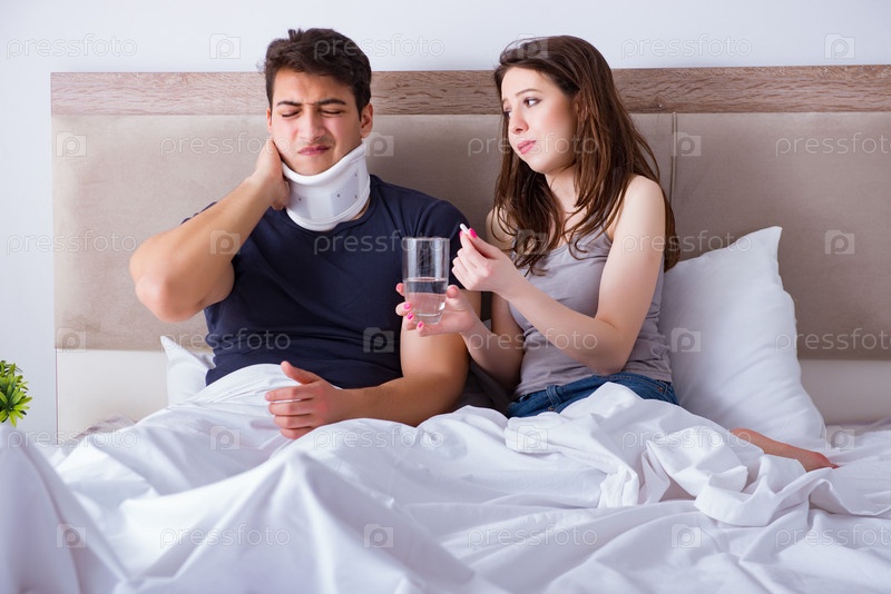 Любящая жена заботится о раненом муже в постели