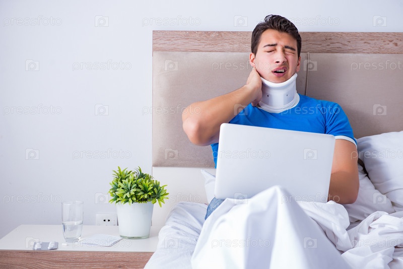 Молодой человек с травмой шеи в постели