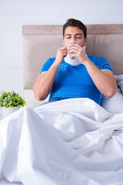 Молодой человек с травмой шеи в постели