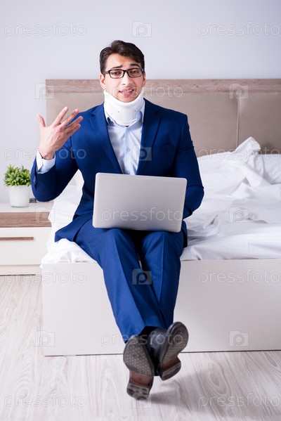Бизнесмен с травмой шеи, работающий из дома