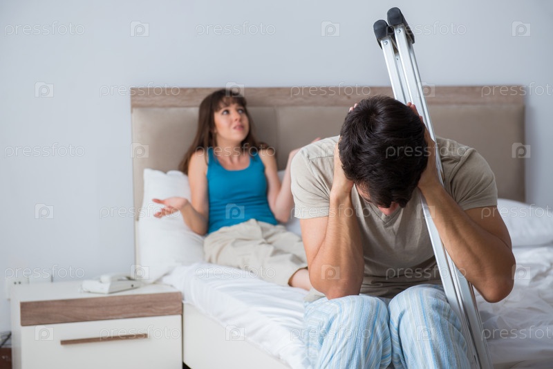 Молодая жена поддерживает мужа на костылях после травмы