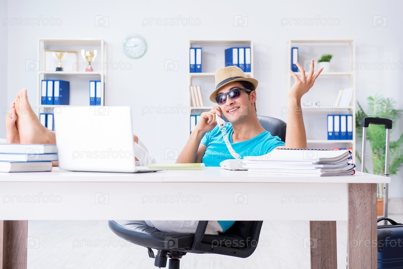 Бизнесмен готовится к отдыху в офисе