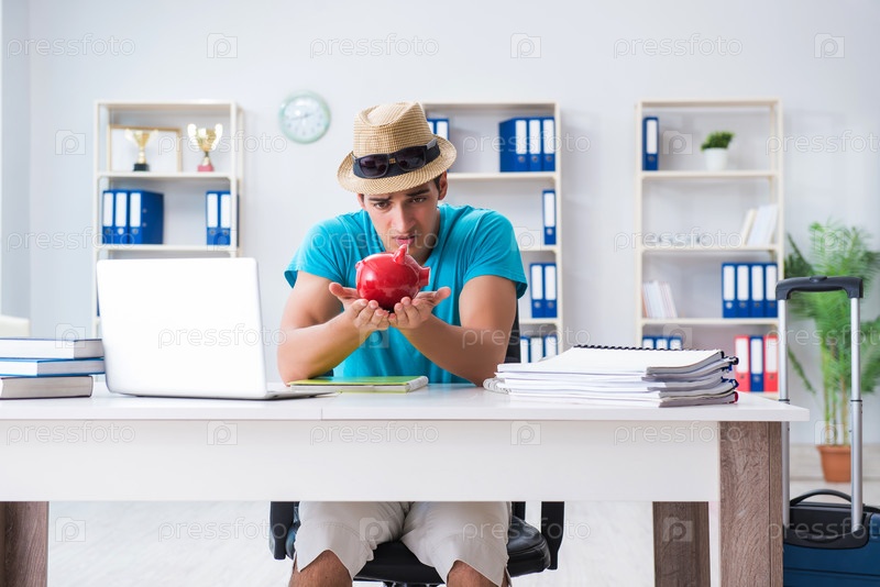Бизнесмен готовится к отдыху в офисе