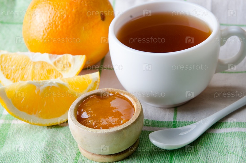 Чашка чая, подаваемой с апельсиновым вареньем