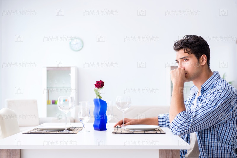 Мужчина в одиночестве готовится к романтическому свиданию со своей возлюбленной