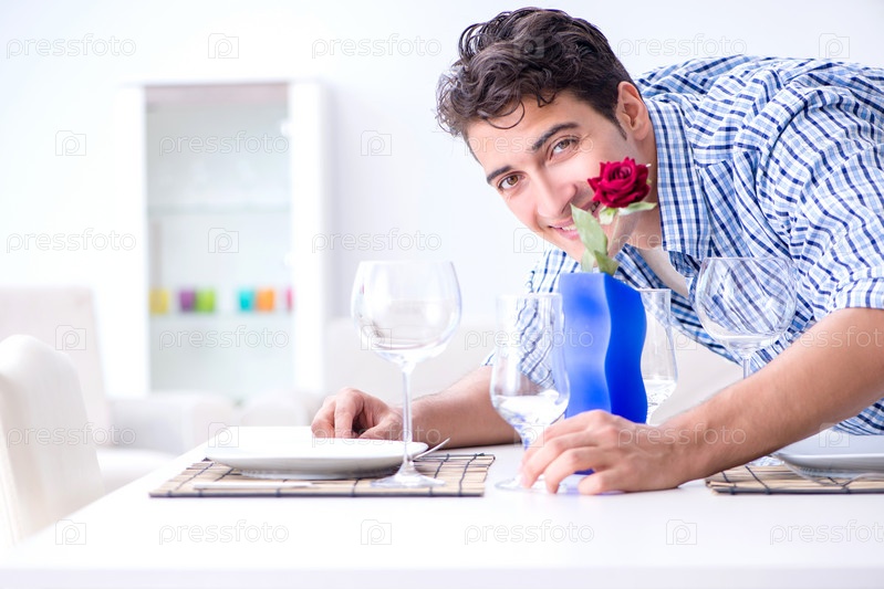 Мужчина в одиночестве готовится к романтическому свиданию со своей возлюбленной