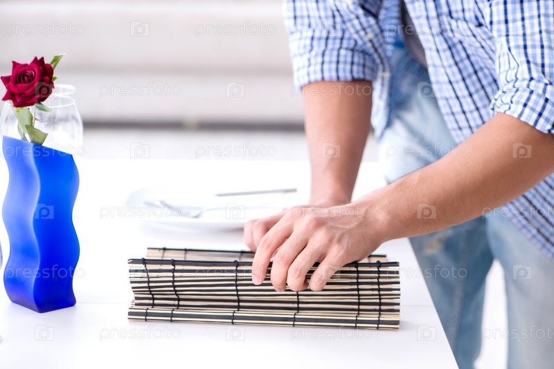 Мужчина в одиночестве готовится к романтическому свиданию со своей возлюбленной