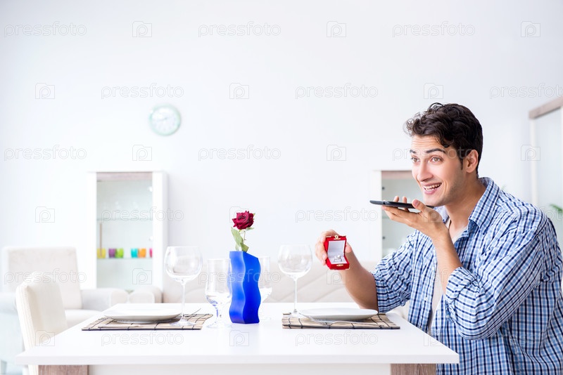 Мужчина в одиночестве готовится к романтическому свиданию со своей возлюбленной