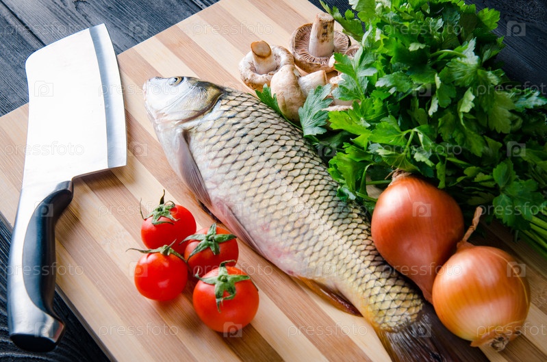 Сырая рыба на режущей доске в концепции приготовления пищи