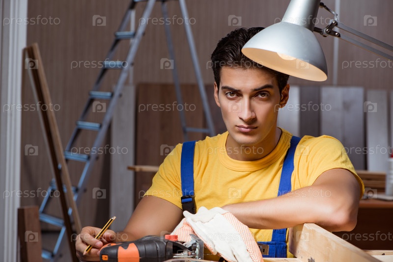 Работник, работающий в ремонтной мастерской по концепции деревообработки