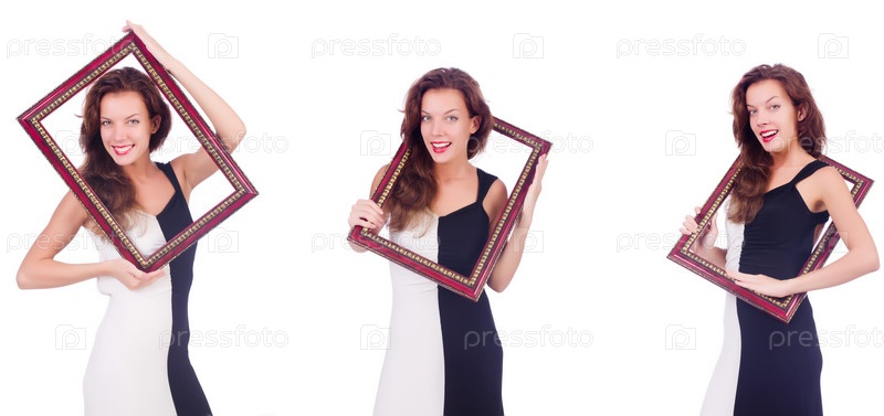 Женщина с каркасом на белом