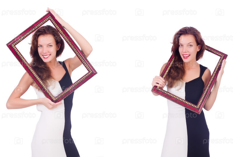 Женщина с каркасом на белом