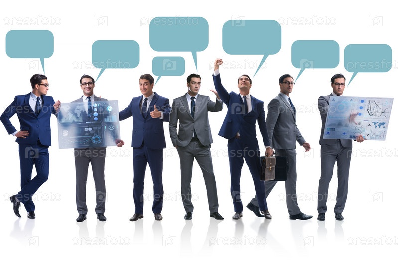 Бизнесмены с вызовом пузырь пустое сообщение изолированное на белом